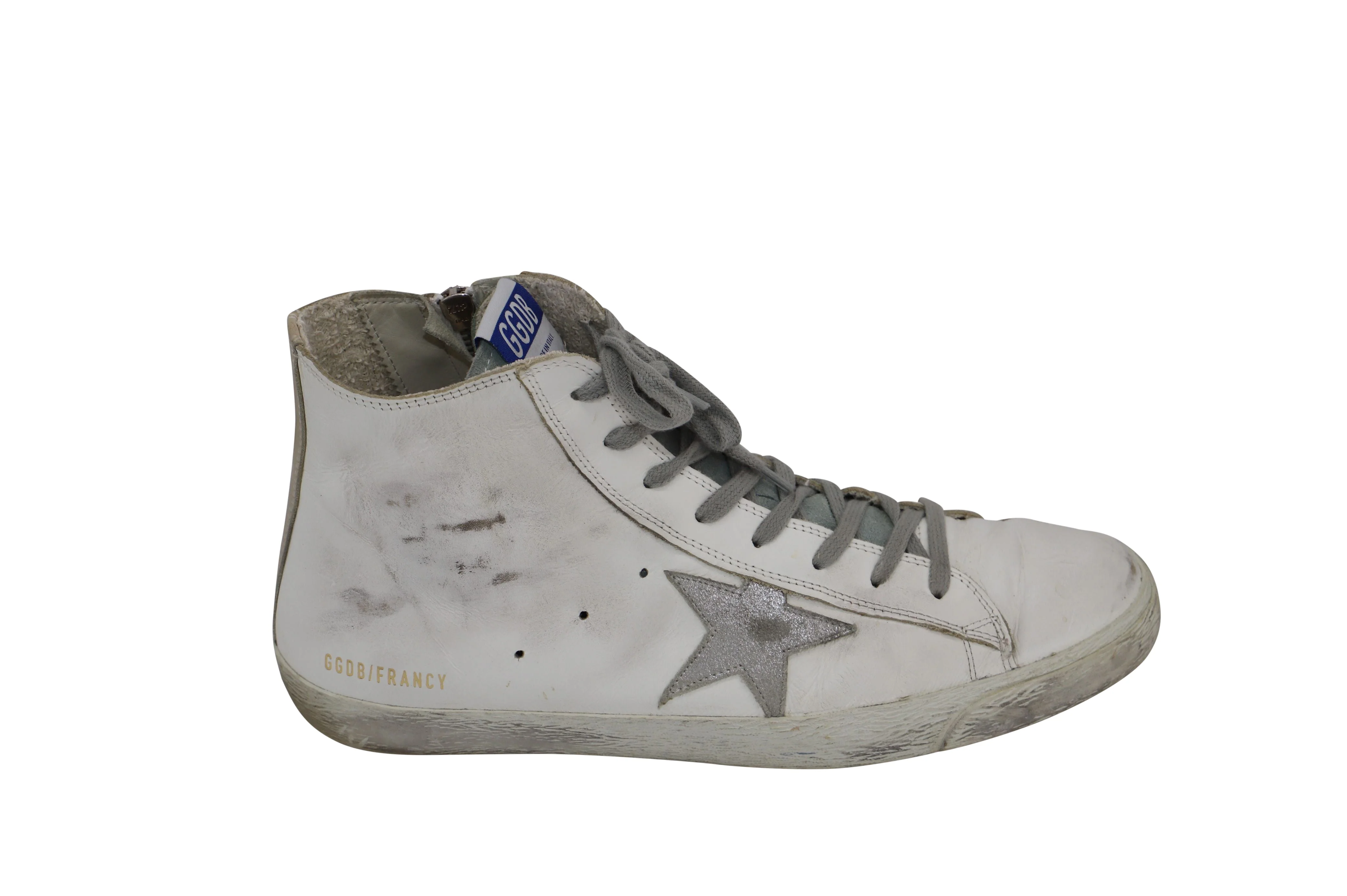 Golden Goose Francy Distressed High-Top Sneakers in White Calfskin Leather